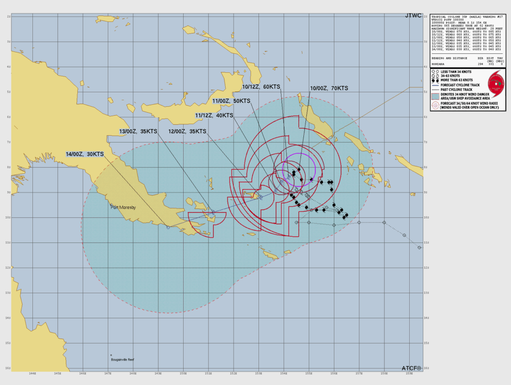 Maila, as you can see from the chart, has been wobbling around the center of the Solomon Sea for several days, and is only now beginning to move in a more-or-less normal path for a southern hemisphere cyclone. It is not particularly strange that the storm has formed at this time of the year, because it is in the southern hemisphere, but it is somewhat unusual that it formed where it did. And extremely unusual for behaving in such a spastic fashion.